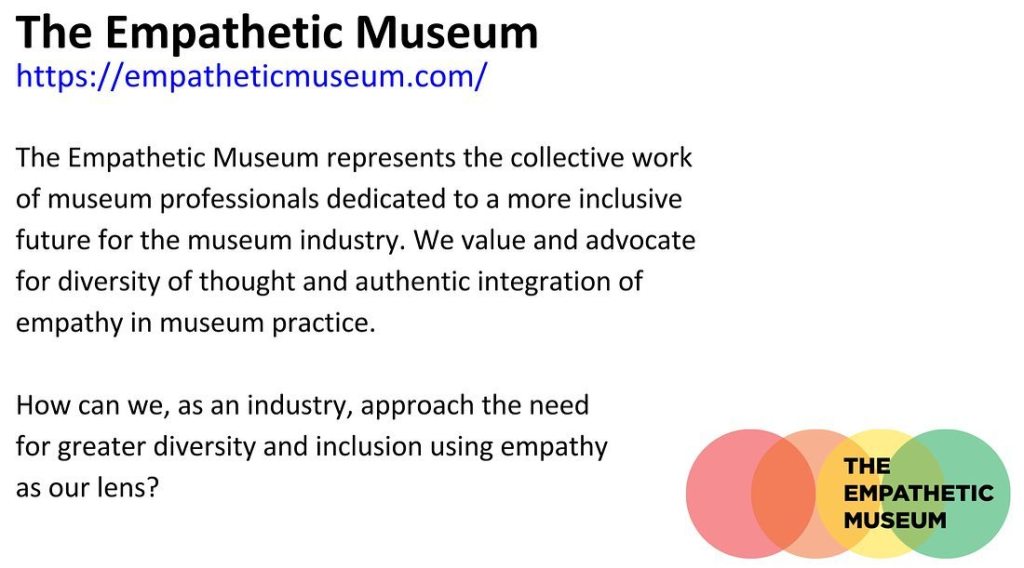 Welcome! We at the Empathetic Museum Are…advocating for The Case for Empathy. Institutional Empathy must live at the core of our museum practice — exhibition and new media design; inclusive and diverse exhibition design and programming in terms of race, ethnicity, accessibility, and sexual orientation; immediate and effective responses to crises in the local community.