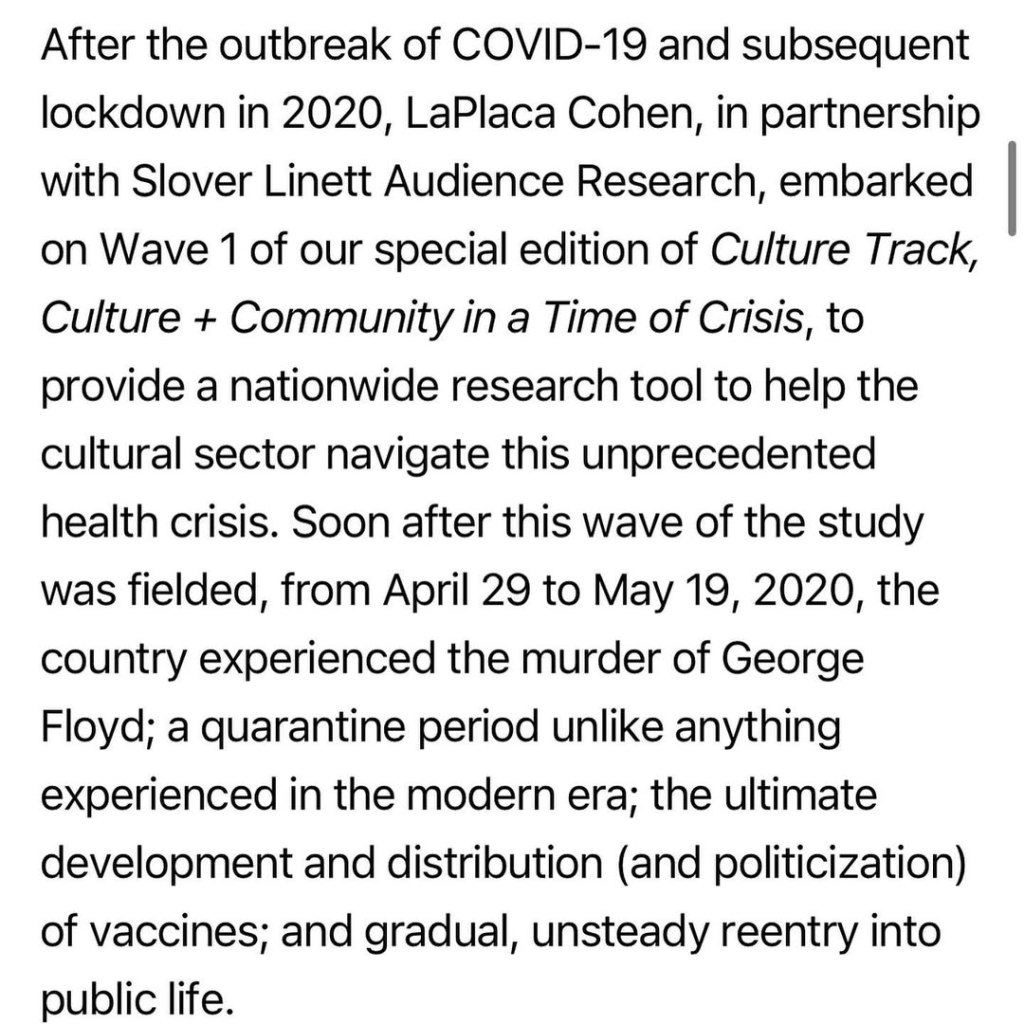The Empathetic Museum. [@empatheticmuseum] (March 26, 2022). “The American Alliance of Museums recently posted an article, A Time of Transformation, as follow up to an original publishing by cultural organization and thought partner, LaPlaca Cohen.” [10 Image Slideshow]. Instagram. https://www.instagram.com/empatheticmuseum/p/Cbkoe2KL95O/?img_index=1