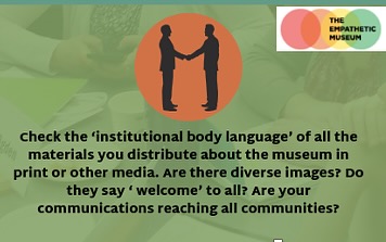 Positive “Institutional Body Language” is a strong and sustained core of empathy reflected in an inner identity and set of practices that are in agreement with an institution’s outward image. The subtle, unspoken messages that a museum communicates reveal its true capacity for lasting empathetic practice and meaningful connections to diverse communities.